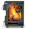 Отопительный котел Теплодар Куппер ОК 9 — для отопления помещений общей площадью до 90 м.кв. Работает на топливе: дрова, торф, уголь, электричество (комплект ТЭН в каждом котле), газ и пеллеты при наличии соответсвующей горелки (приобретается отдельно). Имеется возможность установить регулятор мощности тяги (приобретается отдельно!).Котел Теплодар Куппер ОК 9 имеет водную рубашку и трубчатый теплообменник на котором располагается съемный отбойник для поворота пламени и более эффективного нагрева теплоносителя (воды). Подключаются радиаторы отопления, при желании водные «теплые полы», подогрев бассейна и др.